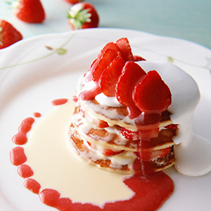 红色背景前方木制桌面上的白色盘子汇总,盛了看上去就十分美味的巧克力蛋糕。